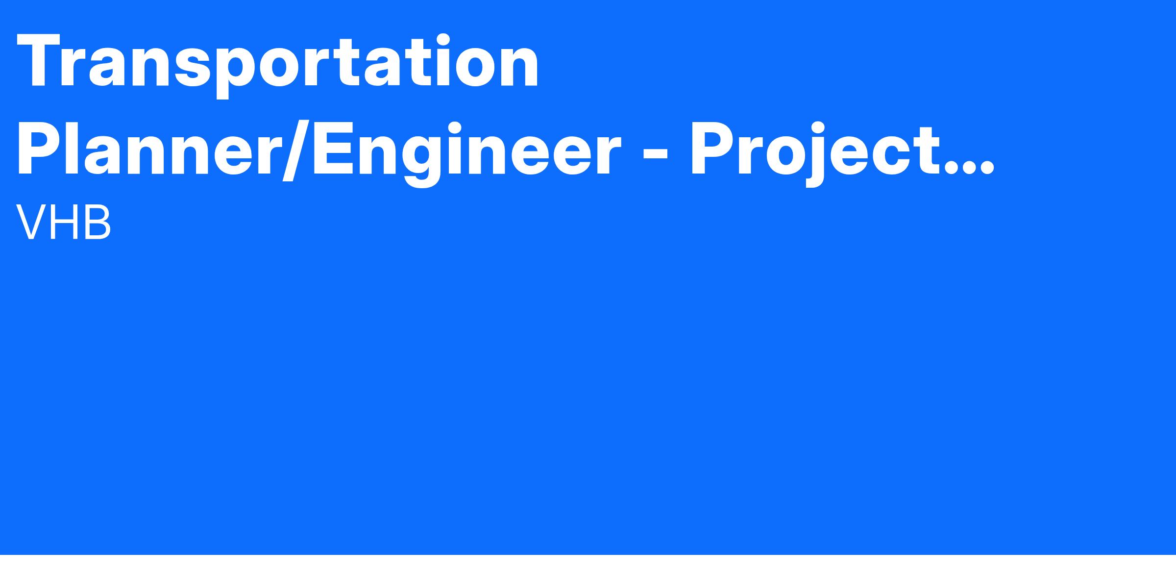 VHB’s growing Metro DC operation is seeking a Transportation Planner/Engineer - Project Manager to join our Tysons Corner, VA Transportation Systems team. The selected candidate will work with VHB’s passionate team of engineers, planners, and designers on a variety of projects across a broad cross-section of markets. This includes partnering with public and private clients at the federal, state, and local levels to improve mobility, enhance communities, boost economic vitality, and balance development and infrastructure needs with environmental stewardship.