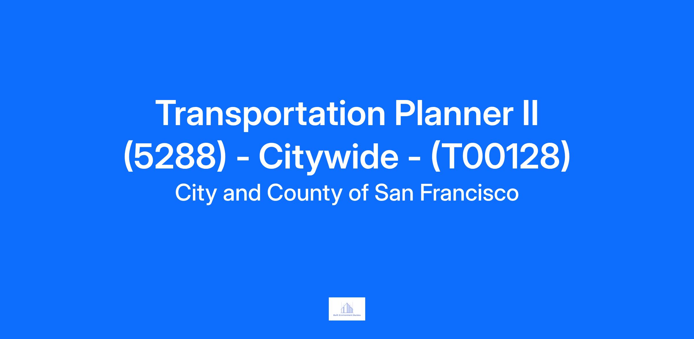Under general supervision, the 5288 Transportation Planner II performs transportation planning work concerning public transportation, shuttle services, biking and walking, curb/parking management, paratransit, traffic management, commercial ground transportation management, and other transportation modes.