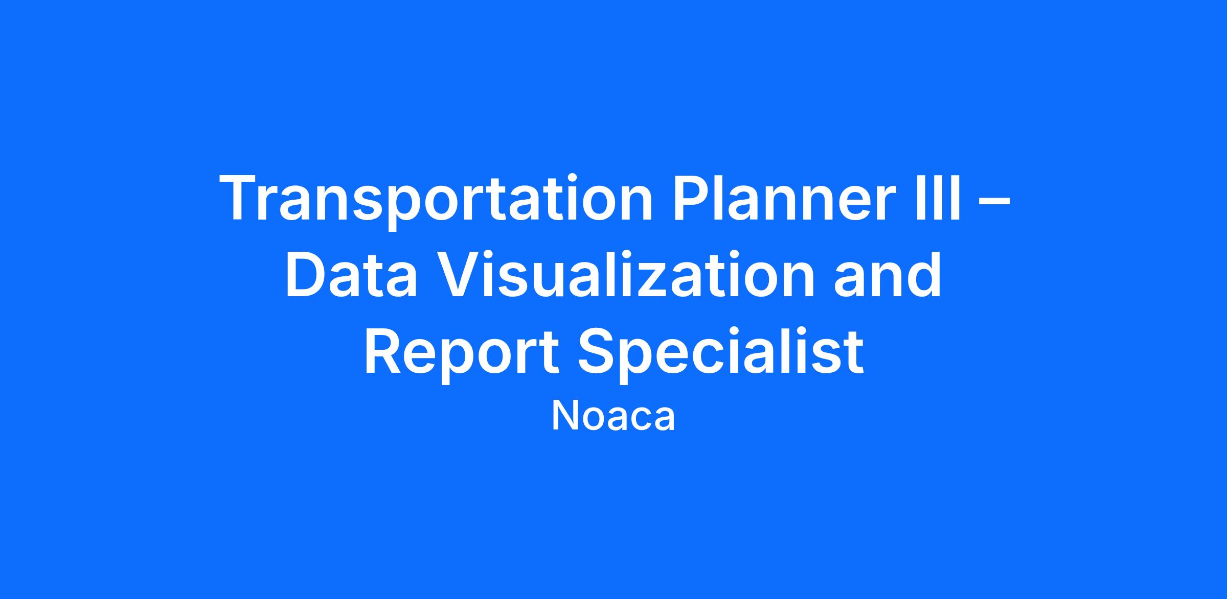 We invite emerging planning professionals with passion, curiosity, and a service mindset to apply for the role of Transportation Planner III – Data Visualization and Report Specialist.