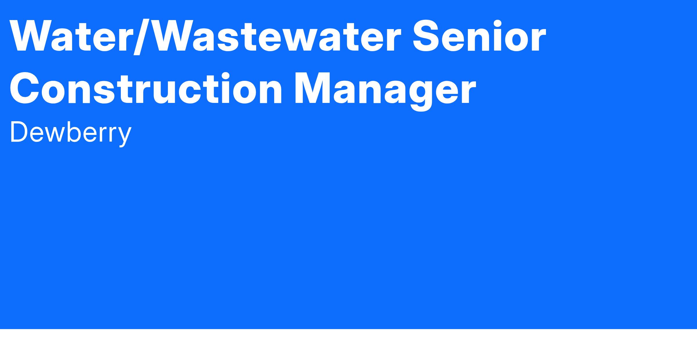 Dewberry is currently seeking a Senior Construction Manager to join our Construction Management Group in either Rancho Cordova, CA or Manteca, CA. This candidate will possess a background and experience in water-wastewater, storm water, flood control, pipeline, commercial/public buildings related infrastructure, to include pump stations, pressure pipeline, gravity pipeline, mechanical and electrical systems and associated structures. The construction manager will be responsible for inspection, supervision of other inspectors, resident engineering, and constructability reviews during the design process. Candidates are expected to assist other Dewberry functional units in the review of deliverables, estimating and to provide expertise during design. Client types are expected to be both municipal/government and private (e.g., developers, builders, etc.). Candidates who will be considered must have at least 15 years of experience in the fields of construction management, construction engineering and construction inspection. The successful candidate must be able to demonstrate an extensive background and the certifications, skills, and ability to work with a diverse inspection staff, providing resident project representation (RPR), construction inspection, management, and administration. Experience with alternative delivery methods is desired, including construction management-at-risk, design-build, and traditional design-bid-build. CMP certification is desirable, but not required. Other education, engineering, or construction management degree(s) are desirable, but not required.